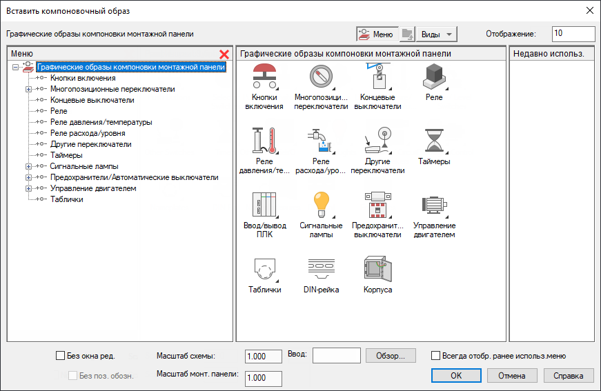 Чтобы вставить компоновочые образы для компонентов монтажной панели, не показанных на схеме, используйте графическое меню монтажной панели. найти
