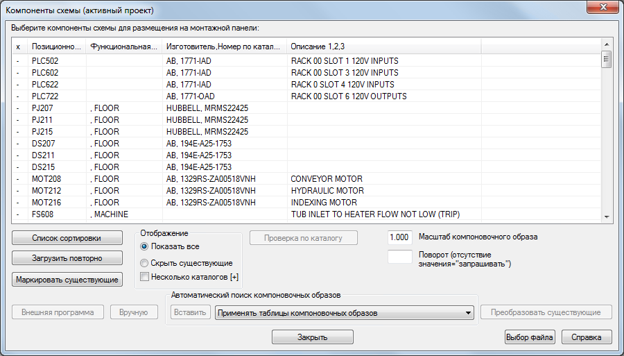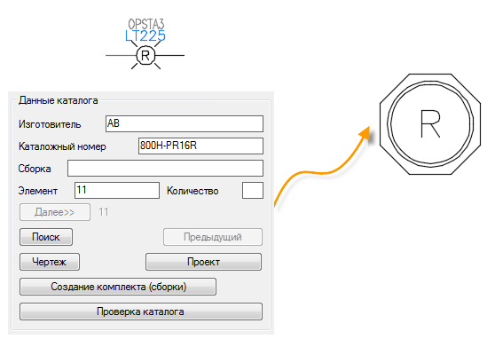 Чтобы найти правильный компоновочный образ монтажной панели, в Инструментарий AutoCAD Electrical используется назначение каталожного номера для компонента схемы.