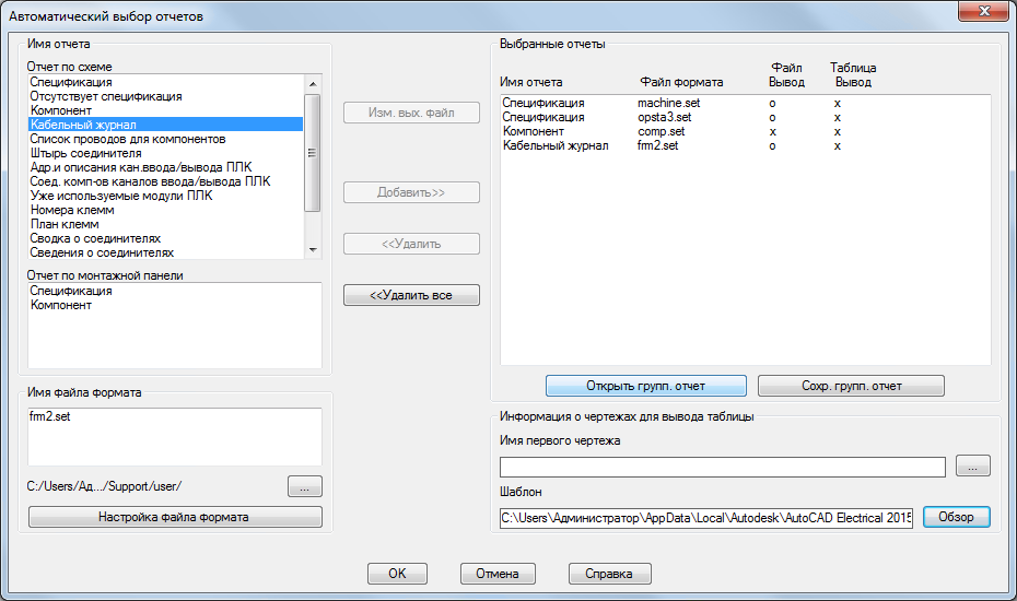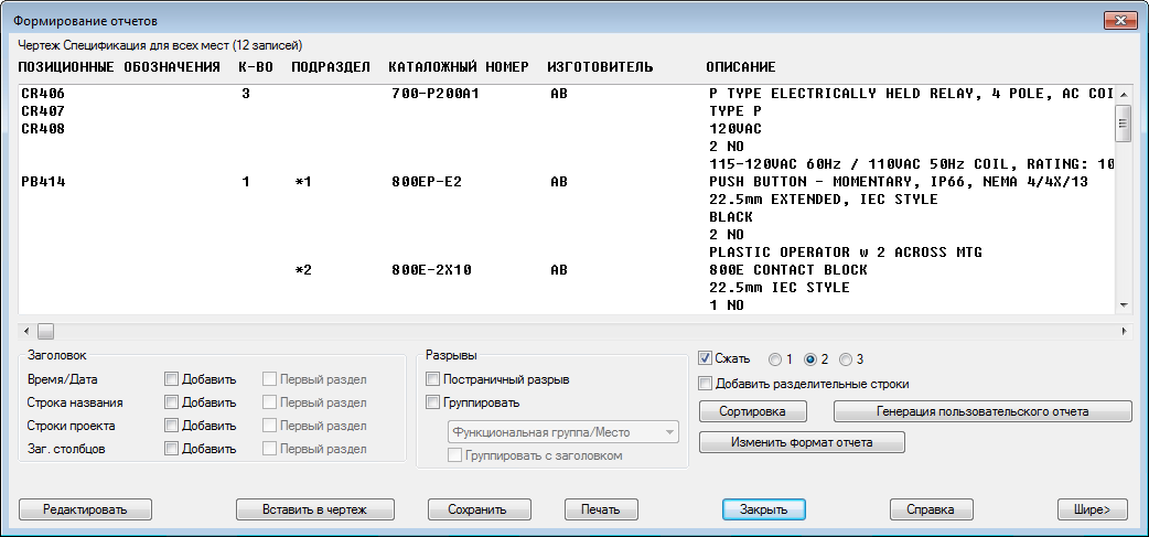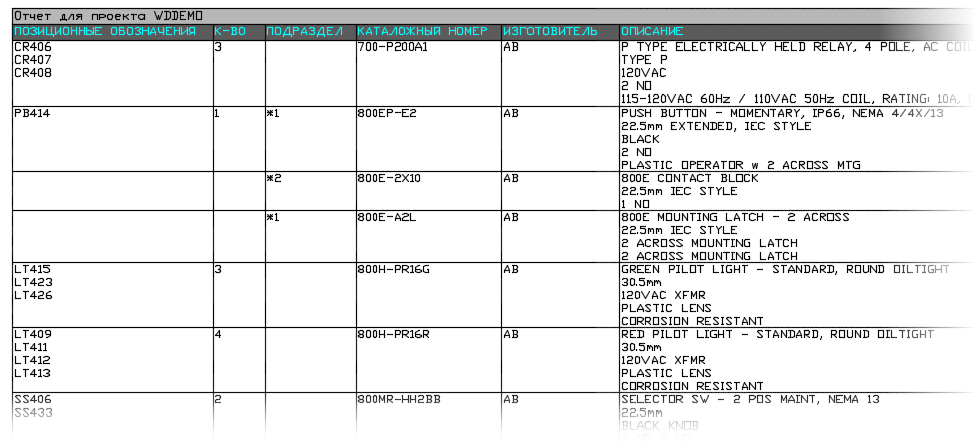 В Инструментарий AutoCAD Electrical есть несколько вариантов отчетов. В некоторых отчетах содержится информация, извлеченная только из чертежей схем, в то время как в других отчетах содержатся сведения только из чертежей компоновки монтажной панели. Также можно создать полный отчет о спецификации, в который включаются все элементы монтажной панели и любые элементы схемы, не показанные в компоновках монтажной панели.