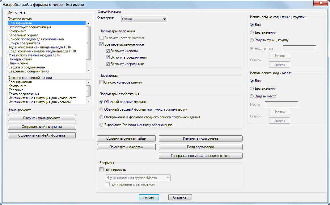 Отчеты создаются очень просто. Нужно выбрать, требуется ли создание отчета о схеме или монтажной панели,