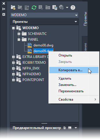 С помощью Диспетчера проектов можно скопировать отдельный чертеж из любого открытого проекта и добавить его в активный проект.