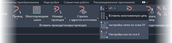 После задания формата системы координат можно вставить многозвенную цепь, сетку X-Y или зону по оси X в чертеж. Найдите команды на вкладке "Схема"