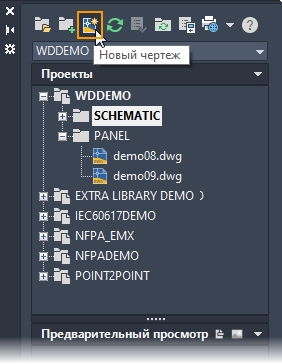 Для создания чертежа используйте инструмент "Новый чертеж". При создании чертежа в Диспетчере проектов чертеж добавляется в активный проект в конец списка чертежей. Перетащите чертежи, чтобы изменить их порядок.