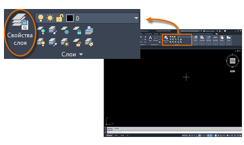Для просмотра организации чертежа используется команда СЛОЙ, чтобы открыть "Диспетчер свойств слоев". Можно ввести СЛОЙ или СЛ в окне команд, либо щелкнуть инструмент "Свойства слоя" на ленте.