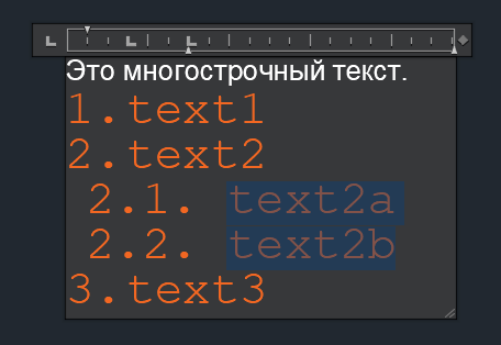 Чтобы добавить новые элементы списка после text2, поместите курсор после text2 и нажмите клавишу ENTER.
