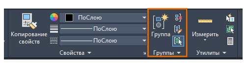 Панель содержит команды «Группировать» и «Разгруппировать», а также...