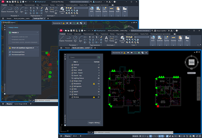 Быстрый и точный подсчет количества экземпляров объектов на чертеже. В текущий чертеж можно вставить таблицу с данными о количестве.