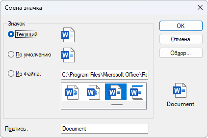 Обеспечивает возможность выбора значка из файла (допустимые типы файлов: EXE, DLL и ICO).