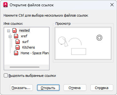 Если внешние ссылки являются вложенными, выбранная внешняя ссылка на чертеж (xref) открывается в новом окне.