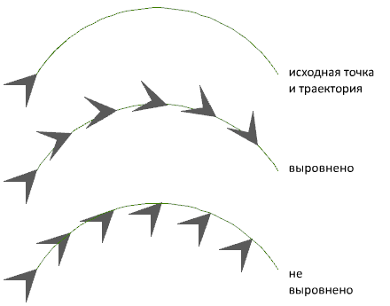 Указание того, следует ли выравнивать каждый элемент по касательной к траектории. Выравнивание выполняется относительно ориентации первого элемента.