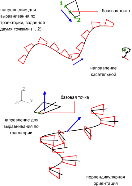 Определение того, каким образом выравниваются элементы массива относительно начального направления траектории.