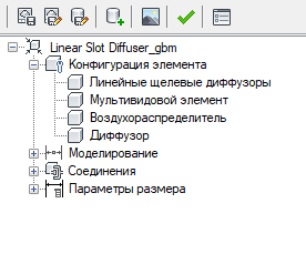 При открытии среды параметрического построения первой папкой в обозревателе элементов является папка "Конфигурация элемента". Конфигурация элемента определяет характеристики и поведение элемента в соответствии с областью, типом и подтипом; она требуется для сохранения элемента. Чтобы убедиться, что элемент допустим и сохранен правильно, необходимо определить конфигурацию элемента перед началом его моделирования.