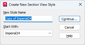 Присвоение имени для нового стиля сечения. По умолчанию имя для нового стиля устанавливается на основе имени стиля с префиксом "Копия".