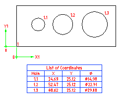 Таблица отверстий — это таблица, в которой перечислены размеры и положение выбранных отверстий (любая окружность или стандартное отверстие) в чертеже. Команда AMHOLECHART создает таблицу отверстий, когда пользователь выбирает отверстия и исходную точку, по которой определяется расположения. При создании таблицы отверстий рядом с каждым отверстием располагается метка для его уникальной идентификации в таблице отверстий. Если отверстия удаляются, таблица отверстий обновляется автоматически. Тем не менее, при построении новых отверстий таблица отверстий не обновляется автоматически. Необходимо специально добавить новое отверстие в таблицу.