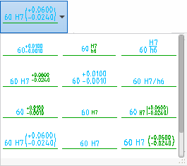 Раскрывающийся список "Допуск" содержит миниатюры, изображающие различные способы допусков. Выбрав требуемый способ допуска, задайте отклонения.