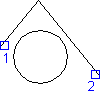 4. Выберите первую точку (1) и вторую точку (2).