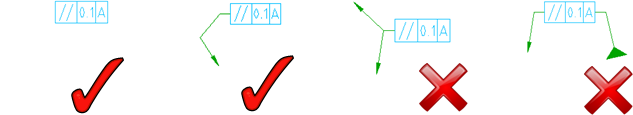 - Стандарт не поддерживает выноски указателя поверхности в соответствии с текущей конфигурацией обозначения. Например: