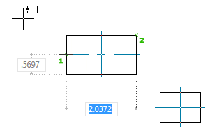 Можно выбрать удобную начальную точку (угол, середину основания, середину высоты или центр прямоугольника) и задать высоту и длину основания путем ввода их значений в подсказках, показывающих размеры прямоугольника. Можно также изменить форму углов и указать, следует ли создавать для прямоугольника осевые линии.