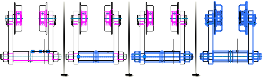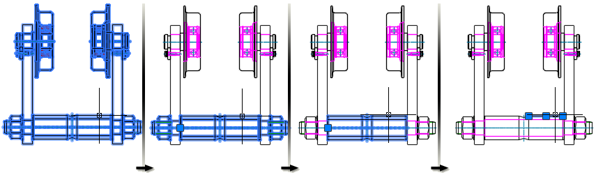 Если установлен режим выбора "сверху вниз", первым щелчком мыши выбирается сборка верхнего уровня а следующим — следующий уровень узла, и так до тех пор, пока не будет выбрана вся геометрия. По мере нажатия кнопки мыши в подсказке (на иллюстрации не показана) отображается имя выбранного объекта.