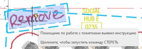 Щелкните текст пометки, чтобы запустить команду СТЕРЕТЬ.