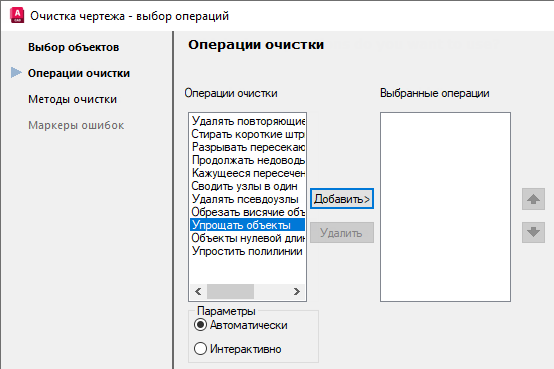 Очистка чертежаОткрывается диалоговое окно "Очистка чертежа", как показано на рисунке 17.