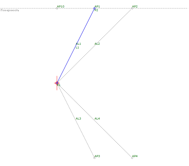 В этом примере для получения отметки целевой поверхности используется дополнительная точка (Auxiliary Point). Геометрия определяется значением Y точки P3 относительно значения Y поверхности AP1.