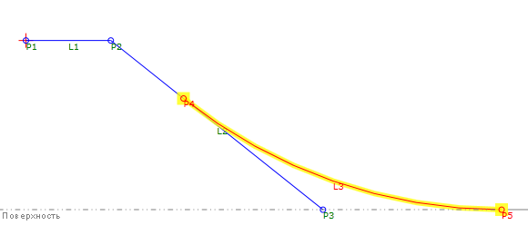скругленным звеном, оканчивающимся выходом на рельеф, формирующим дугу от L2 до поверхности. При изменении отметки поверхности L3 сохраняет определяющие параметры, а также касание L2.