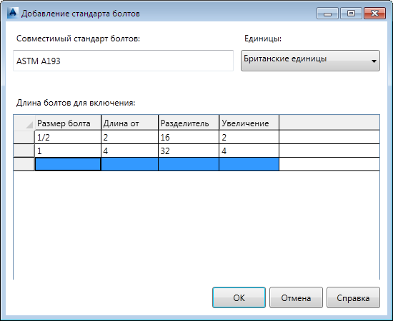 Указание значения, на которое длина болта увеличивается для каждого размера, созданного в диапазоне. Можно изменять, добавлять или удалять значения длины болтов в диалоговом окне Сопоставление длины болтов.