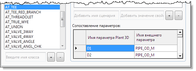 Можно ввести эти параметры в таблицу сопоставления в столбце "Имя параметра Plant 3D" и сопоставить их с соответствующими именем свойства (или значения) AutoPLANT.