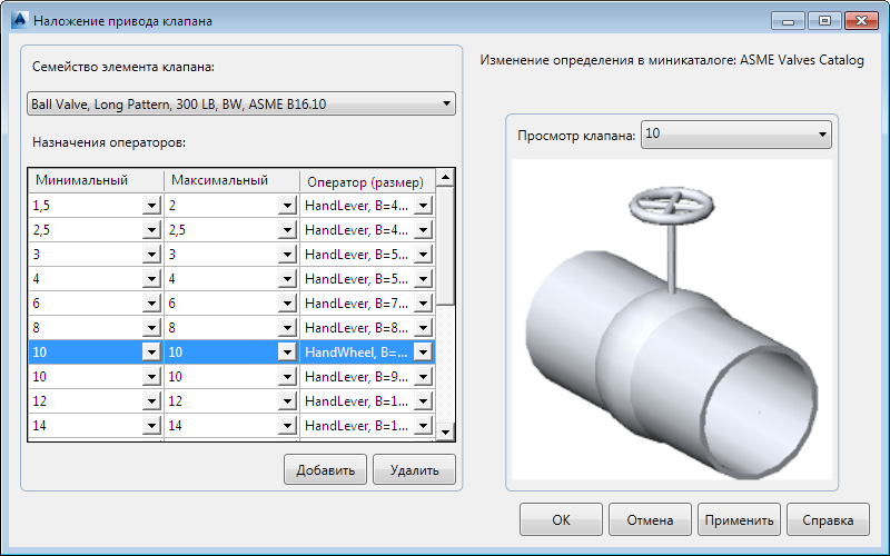 Задает привод арматуры по умолчанию. Можно назначить оператор на основании размера клапана.