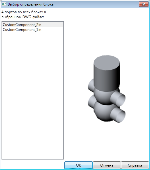 Указание блока на чертеже с информацией о порте, добавленной с использованием PLANTPARTCONVERT.