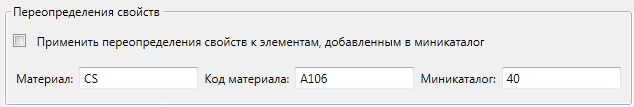 - На панели "Каталог" выберите "Применить переопределения свойств к элементам, добавленным в миникаталог".