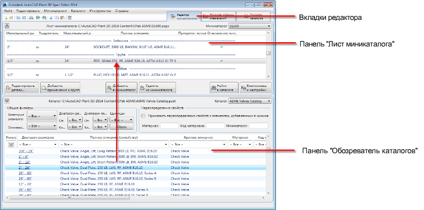 В редакторе миникаталогов AutoCAD Plant 3D toolset можно создавать и изменять файлы миникаталогов с использованием каталогов деталей, соответствующих промышленным стандартам. Также в нем можно адаптировать каталоги.