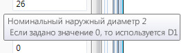 Наведите указатель на поле размера для отображения информации о значении параметра. Для некоторых параметров можно вводить специальные значения, например ноль для указания значения по умолчанию или флажок, чтобы нарисовать сальник.