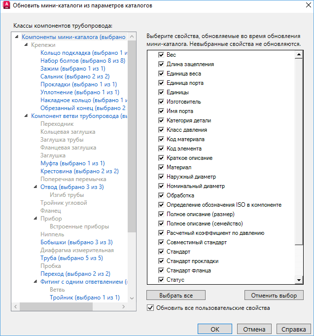 Задание свойств, которые необходимо обновить из каталога в процессе обновления мини-каталога.