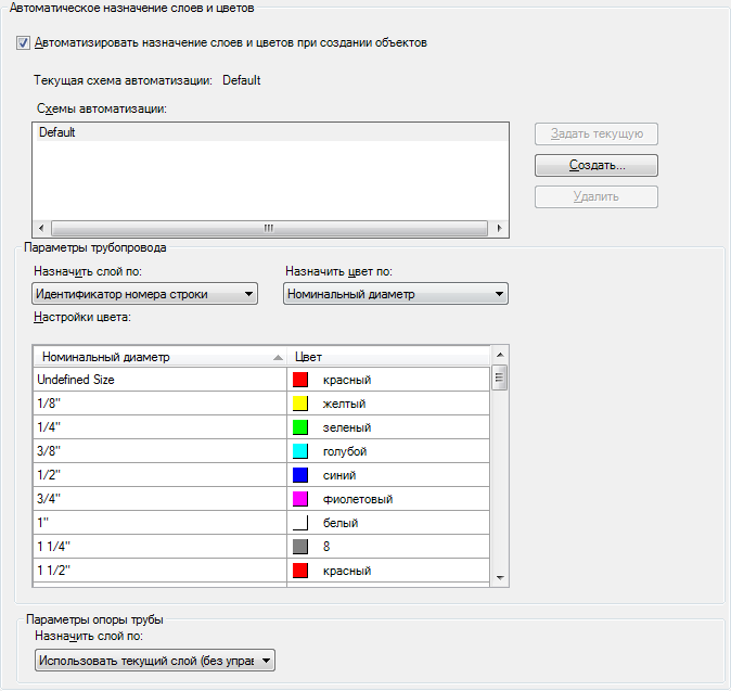 После снятия флажка "Автоматизировать назначение слоев и цветов при создании объектов" действуют настройки слоев и цветов AutoCAD по умолчанию.