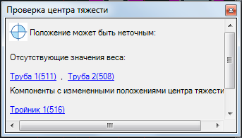 В модели можно добавить обозначение снимка конфигурации центра тяжести. При наведении указателя на обозначение снимка конфигурации центра тяжести в подсказке-ролловере отображаются координаты центра тяжести и значение веса.