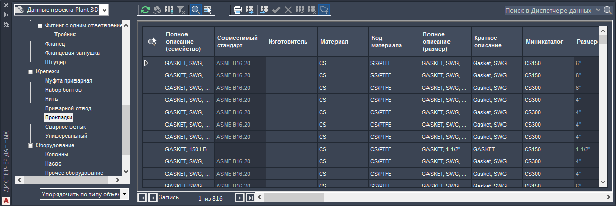 Диспетчер данных позволяет работать с данными Plant. С помощью Диспетчера данных можно просматривать, изменять, экспортировать и импортировать данные чертежей и проектов, а также создавать отчеты.