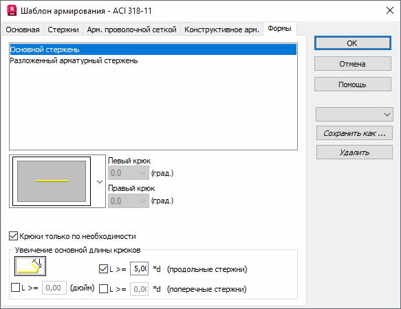 Можно также использовать опцию, которая позволяет определять длину крюка непосредственно (задать значение длины) или связать с длиной и диаметром стержня.