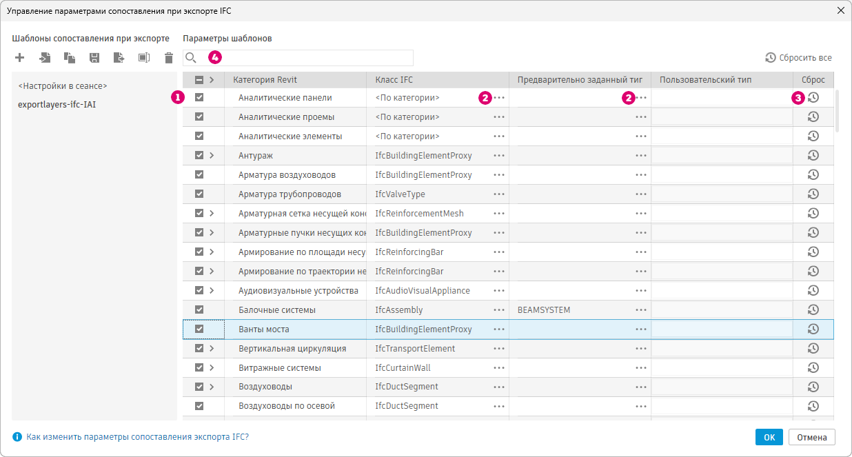 Создание шаблонов и управление ими при экспорте моделей Revit в формат IFC.