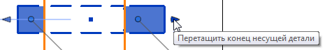 Перетащите элемент управления на конце несущей детали, чтобы настроить длину несущей детали от стержня. Во время перетаскивания элемента управления нажмите клавишу SHIFT, чтобы ограничить направление перемещения.