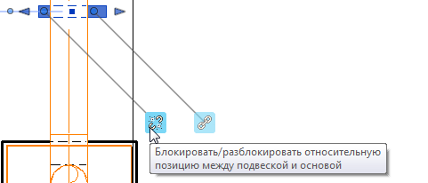При выборе подвески из базы данных производителя можно использовать элементы управления в области рисования для изменения положения несущего элемента подвески.