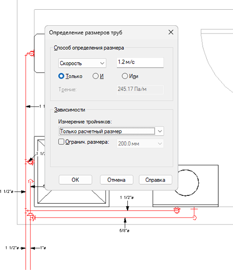 На следующих рисунках показаны результаты применения различных способов определения размеров труб.