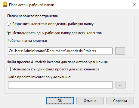 В диалоговом окне «Параметры рабочей папки» выберите «Использовать одну рабочую папку для всех клиентов».