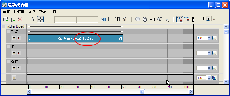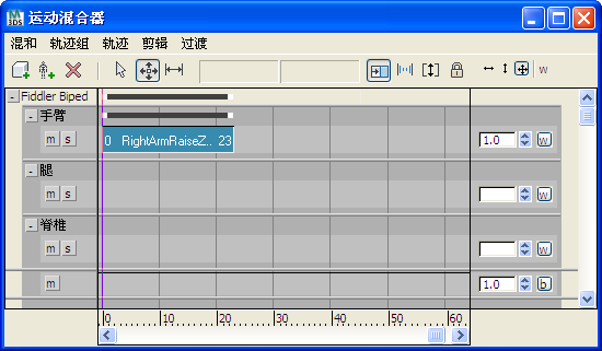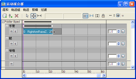 在运动混合器中,您既可以缩短剪辑,也可以采用交互方式更改轨迹显示的剪辑计时。