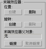 将末端效应器链接到场景中的一个对象。因为末端效应器并不在对象本身中,所以在“轨迹视图”中看不到此链接,但链接的末端效应器将会继承它父对象的变换。
