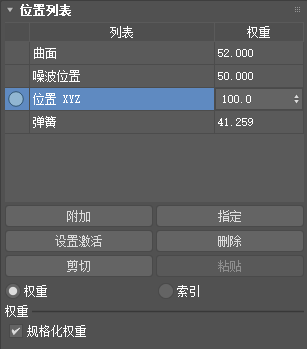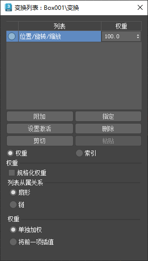 启用此项后,列表中的所有控制器的权重值被平均化。只适用于“变换列表”、“位置列表”和“缩放列表”控制器。默认设置为禁用。