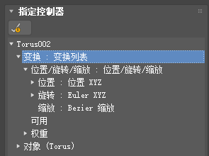 当指定了使用“动画”菜单的控制器时,默认设置自动指定一个列表控制器,列表中的第一项会放置选择的控制器。此行为与在“运动”面板或“轨迹视图”中指定控制器不同。此时,只分配指定控制器。