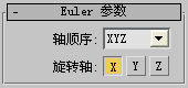 在“PRS 参数”卷展栏中选择了“旋转”时,将显示“Euler 参数”卷展栏。