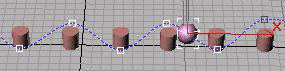 绘制改变控制器属性对动画的影响。曲线顶端的红色标记代表关键点。曲线左右两边的标记代表关键点两侧时间的均匀分布。